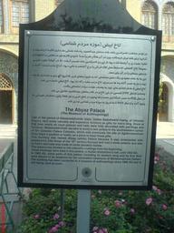 Keywords: The Abyaz Palace.JPG of Abyaz palace in Golestan palace - Tehran / Iran own Professional Assassin 2009-10-23 cc-by-sa-3 0 GFDL Abyaz Palace Bilingual signs Anthropology museums in Iran