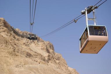 Keywords: mountain cable car aereal Ropeway leading Masada Israel Rock