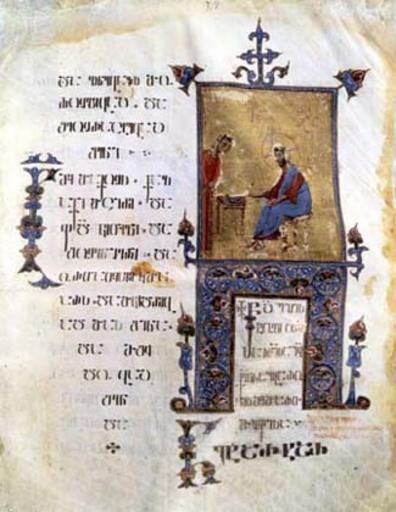 | Keywords: The Alaverdi Four Gospels, A-484,1054 Christ Writing the Letter to Augarus.jpg en The Alaverdi Four Gospels A-484 1054 Christ Writing the Letter to Augarus ka ალავერდის თხთავი A-484 1054 წ ქრისტე წერს ეპისტ ლეს ავგარ ზს ხელ აწერთა ი სტიტუტი http //www photomuseum org ge/laboratory/images/03 jpg www photomuseum org ge anonymous 1054 Source http //www photomuseum org ge/laboratory/03_en htm www photomuseum org ge en <br>http //www photomuseum org ge/laboratory/03_ge htm www photomuseum org ge ge PD-old-100 Alaverdi Gospels Asomtavruli letter Nari Asomtavruli letter Khani |