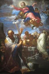 | Keywords: 'The Assumption of the Virgin' by Giovani Battista Lenardi.JPG en The Assumption of the Virgin with St Anne and St Nicholas of Myra by Giovani Battista Lenardi 1690 oil on canvas own Giovani Battista Lenardi 1690 Giovani Battista Lenardi PD-old-100 |
