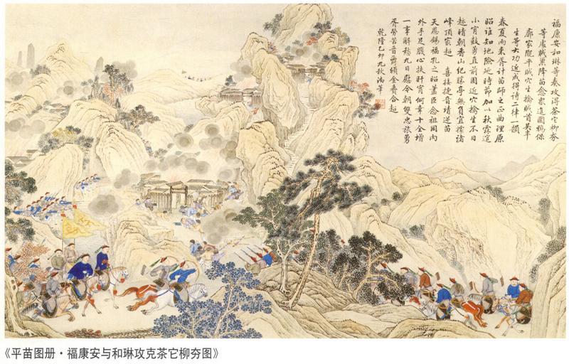 Keywords: The Attack on Rebel Hideouts at Chaitou, Liutao etc..jpg en A scene of the Chinese Campaign against the Miao Hunan 1795 zh-hans å¹³å®šè‹—ç–†æˆ˜å½¹ä¹‹ä¸ ” ”攻得茶它柳夯ç‰å¤„贼巢 http //www battle-of-qurman com cn/e/hist htm late XVIII century A collaboration between Chinese and European painters The Jesuit missionaries involved in producing the drawings in China were Giuseppe Castiglione Jean-Denis Attiret Ignace Sichelbart and Jean Damascene The engravings were executed in Paris under the direction of Charles-Nicolas Cochin of the Académie Royal at the Court of Louis XVI and the individual engravers include Le Bas Aliamet Prevot Saint-Aubin Masquelier Choffard and Launay PD-Art Military of Qing China Ten Great Campaigns Paintings of the Qing Dynasty |