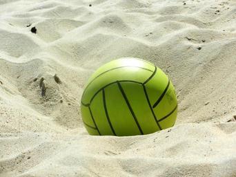 Keywords: the ball beach sport ball sand the baltic sea sandy beach view volleyball