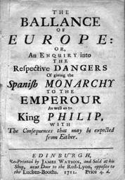 | Keywords: The ballance of Europe.jpg en The ballance of Europe or an enquiry into the respective dangers of giving the Spanish monarchy to the Emperour as well as to King Philip 1711 National Library of Australia Defoe Daniel 1661 -1731 attributed name PD-old-100 Uploaded with UploadWizard Books from Scotland War of the Spanish Succession Books in English 1711 books |