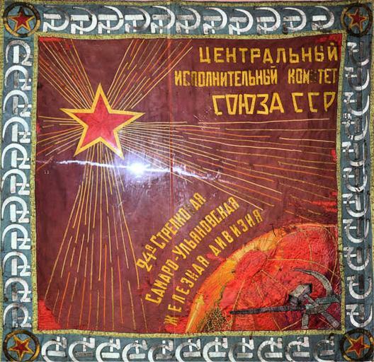 | Keywords: The banner of 24th Samara-Ulyanovsk Iron Division from Central Executive Committee USSR.jpg en The banner of the 24th Samara-Ulyanovsk «Iron» Division from the Central Executive Committee of the USSR аг адное знамя ВЦИК СССР в ученное 24-ой Железной Сама о-Ульяновской дивизии в 1927 году Являлось боевым К асным Знаменем 24-й ст елковой дважды К аснознаменной Сама о-Ульяновской железной дивизии в годы Великой Отечественной войны http //www sd24 org/drupal/sites/default/files/pageimage/5 jpg at http //www sd24 org/drupal/div_history 1927 Not provided PD-RU-exempt PD-RU-exempt Battle standards of the Soviet Union 1926 |