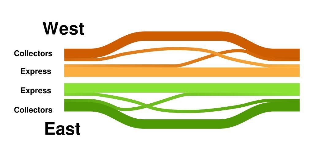 | Keywords: The Basketweave.svg en A diagram of the 401 expressway basketweave interchange in Toronto Ontario Canada Own Paulshannon 2008 43 43 7 9 N 79 29 55 4 W Maps of Ontario Highway 401 Diagrams of interchanges Local-express lanes Interchanges in Ontario Basketweave Toronto |