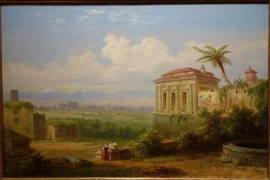 | Keywords: The Baths of Titus, Monte Cavi from the Palatine, Rome, by William Thompson Russel Smith, c. 1851-1852, oil on canvas - New Britain Museum of American Art - DSC09194.JPG en Exhibit in the New Britain Museum of American Art New Britain Connecticut USA This artwork is in the public domain because the artist died more than 70 years ago The museum permitted photographs of this exhibit without restriction 2013-06-27 12 14 55 own Daderot PD-old-70-1923 cc-zero Paintings in the New Britain Museum of American Art Uploaded with UploadWizard William Thompson Russell Smith |