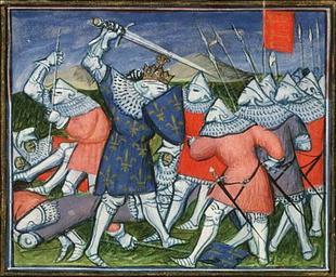 | Keywords: The battle of Poitiers.jpg en Jean Froissart Chroniques Vol I The battle of Poitiers Place of origin date Paris Virgil Master illuminator ; c 1410 Material Vellum ff 382 385x288 243x187 mm 42 lines littera cursiva Binding 18th-century brown leather; gilt; with coat of arms of Stadholder William V Decoration 1 two-column miniature 170x180 mm ; 29 column miniatures 115/65x95/80 mm ; 1 historiated initial 45x50 mm ; decorated initials with border decoration ff 1r 24r 36r 62r 74v etc Provenance Louis de Luxemburg conn štable de France d 1475; signature erased ; by descent to his granddaughter Françoise de Luxembourg and her husband Philip of Cleves d 1528; coat of arms with label over erasure; signature ; purchased in 1531 from Philip ™s estate by HenriIII Count of Nassau d 1538 ; by descent to the Princes of Orange-Nassau the later Stadholders at The Hague; carried off in 1795 to Paris by the French and restituted to the Koninklijke Bibliotheek in 1816 http //www kb nl/manuscripts/show/manuscript/72+A+25 Jean Froissart Chroniques Vol I Virgil Master illuminator ca 1410 Battle of Poitiers 1356 Chroniques de Froissart vol 1 - Den Haag KB 72 A 25 c 1410 Medieval miniatures of battles Hundred Years' War PD-old-100 |