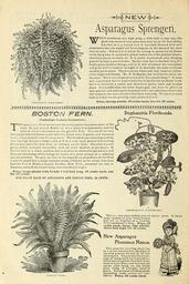 | Keywords: The best homes in America plant my flowers, why not you? (16201904310).jpg ASPAKAGUS SPRE GERI <br> -»fr 4 n e vv 4-j-g- <br> Asparagus Sprengeri <br> WHEN introduced at a high price a little over a year ago this <br> plant was received with some hesitation as to its desirability <br> but after on'y a limited trial it has come forward with such <br> prominence that the supply will be inadequate to the demand for some <br> time to come Not only is it useful for cutting in sprays for cut-flower <br> work but grown in suspended pots it makes one of the prettiest decora- <br> tive house plants we know of It is really handsomest seen drooping <br> gracefully from a pot or basket Sprays from four to five feet long of a <br> bright green feathery foliage and as it will withstand dry atmosphere <br> and grow well ia shade or sunlight it is decidedly the most useful and <br> suitable parlor plant The flowers are white and very fragrant follow- <br> ed by bright red berries Mr H H Battles the well-known floral art- <br> ist says Grow all you possibly can of it; it's a grand thing It is not <br> only a plant that will be used extensively by florists for cut-flower work <br> but it is decidedly a useful and decorative parlor table and window <br> plant It is hardier than any other Asparagus can even be grown in <br> open ground and under good treatment will r ake specimens four to five <br> feet across in one year ” plants which have sold at 5 We have so much <br> faith in it that we are growing 10 000 plants of it now <br> Price strong plants 15 cents each; two for 25 cents <br> BOSTON F£RN <br> Nephrolepis Exaltata Bostoniensis <br> THIS grar d new Fern has become the most popular decorative plant of the <br> year In and around Boston no other plant is so extensively -used for <br> table or window decoration as this graceful Fern It is one of the very <br> few plants that will thrive under ordinary house care; it grows and improves <br> in size; where most all other Ferns go back The fronds droop and arch gracefully <br> over the edge of a pot or basket and as it is a very rapid grower it is not long <br> beiore they reach the floor from an ordinary parlor table The color is a rich <br> green which contrasts beautlfiflly with all other window or pot plants It <br> thiives well in a shady position but must never be allowed to get too dry and <br> frequent showerings of the foliage by means of a plant syringe or a watering <br> can are essential To give an idea of the magnificent proportions of this Fern <br> it may be stated that a single-specimen plant exhibited at the recent American <br> Institute Fair in Madison Square Garden New York measured ten feet in <br> diameter some of the fronds being over four feet in length <br> Price large plants with fronds 11-2 feet long 15 cents each; two <br> for 25 cents <br> ONE PLANT EACH OP ASPARAGUS AND BOSTON FERN 25 CENTS <br> Stephanotis Floribunda <br> BOSTON TURN <br> STEPHANOTIS FLORIBUNDA <br> This is a rare plant indeed that all should grow It bears <br> large clusters of pure white flowers <br> that are as fragrant as a jRsmine <br> Nothingsweeterorfiner Price 15 <br> cents each; large fine plants <br> three feet high for 40 cents <br> New Asparagus <br> Plumosus Nanus <br> This graceful climhing plant has <br> to a great extent taken the place of <br> the once popular Smilax in all tine <br> decoration s It possesses the advan- <br> tage of being much more graceful ” <br> its foli age being finer than that of the <br> most delicate Fern and will last for <br> weeks after being cu f the whole <br> plant being of a bright cheerful <br> green It is an excel 1 en t house plant <br> succeeding under almost anv con- <br> ditions Price 15 cents each 41847003 130961 64578 Text http //www biodiversitylibrary org/page/41847003 1899 10 5962/bhl title 64578 Ella V Baines Firm ; Henry G Gilbert Nursery and Seed Trade Catalog Collection NameFound Asparagus NameConfirmed Asparagus var pygmaeus Makino EOLID 10487111 NameFound Floribunda NameConfirmed Floribunda EOLID 5190123 NameBankID 3474597 NameFound Nanus NameConfirmed Nanus EOLID 73713 NameBankID 2610066 NameFound Nephrolepis NameConfirmed Nephrolepis EOLID 61678 NameBankID 2644730 NameFound Smilax NameConfirmed Smilax Jorge08 EOLID 3396175 NameFound Stephanotis NameConfirmed Stephanotis EOLID 5328337 NameBankID 3425133 NameFound Stephanotis floribunda NameConfirmed Stephanotis floribunda EOLID 5328953 NameBankID 3425237 Biodiversity Heritage Library Miss Ella V Baines the Woman Florist Springfield Ohio The best homes in America plant my flowers why not you Garden Stories Bulbs Plants Catalogs Flowers Plants Ornamental Seed industry and trade Seeds Trade catalogs U S Department of Agriculture National Agricultural Library bhl page 41847003 dc identifier http //biodiversitylibrary org/page/41847003 bhlGardenStories BHLinbloom bulbs plants plants ornamental u s department of agriculture national agricultural library bhlgardenstories bhlinbloom Information field Flickr posted date ISOdate 2015-01-28 CC-BY-2 0 BioDivLibrary https //flickr com/photos/61021753 N02/16201904310 2015-08-24 07 52 11 cc-by-2 0 PD-old-70-1923 Photos uploaded from Flickr by Fæ using a script The best homes in America The best homes in America plant my flowers, why not you? (16201904310).jpg ASPAKAGUS SPRE GERI <br> -»fr 4 n e vv 4-j-g- <br> Asparagus Sprengeri <br> WHEN introduced at a high price a little over a year ago this <br> plant was received with some hesitation as to its desirability <br> but after on'y a limited trial it has come forward with such <br> prominence that the supply will be inadequate to the demand for some <br> time to come Not only is it useful for cutting in sprays for cut-flower <br> work but grown in suspended pots it makes one of the prettiest decora- <br> tive house plants we know of It is really handsomest seen drooping <br> gracefully from a pot or basket Sprays from four to five feet l