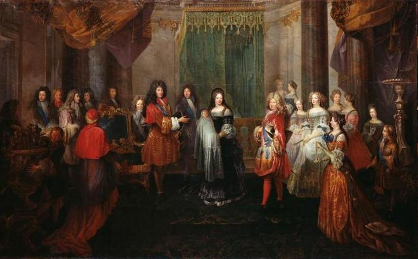 Keywords: The birth of the Duke of Burgundy at Versailles on 6 August 1682 by Antoine Dieu.jpg artwork Versailles en Birth of the Duke of Burgundy http //www culture gouv fr/Wave/image/joconde/0020/m502004_77ee149_p jpg creator Antoine Dieu 1682 Antoine Dieu Louis Duke of Burgundy Louis XIV of France in paintings Marie Thérèse of Austria Louis Grand Dauphin Cardinal de Bouillon Chambre de la Dauphine du Château de Versailles 1682 paintings Paintings in the Musée national du Château de Versailles 1680s paintings from France Philippe Duke of Orléans Regent of France Royal families in art PD-old-100 ImageNote 1 98 140 26 105 499 302 2 Cardinal de Bouillon ImageNoteEnd 1 ImageNote 2 174 130 23 85 499 302 2 Louis XIV ImageNoteEnd 2 ImageNote 3 312 132 14 77 499 302 2 Louis Grand Dauphin ImageNoteEnd 3 ImageNote 4 216 105 15 35 499 302 2 Philippe Duke of Orléans brother of the king ImageNoteEnd 4 ImageNote 5 159 115 11 12 499 302 2 Philippe d'Orléans future Regent of France ImageNoteEnd 5 ImageNote 6 251 111 16 94 499 302 2 Queen Marie Thérèse holding the Duke of Burgundy ImageNoteEnd 6 ImageNote 7 342 210 53 49 749 465 2 The Duke of Burgundy ImageNoteEnd 7 ImageNote 8 276 160 31 133 749 465 2 Louis XIV ImageNoteEnd 8 ImageNote 9 331 158 25 40 749 465 2 Philippe Duke of Orléans ImageNoteEnd 9 ImageNote 10 191 156 29 26 749 465 2 Louis Grand Condé ImageNoteEnd 10 ImageNote 11 244 182 15 71 749 465 2 Philippe Duke of Chartres future Duke of Orléans and Regent of France ImageNoteEnd 11 ImageNote 12 474 215 29 130 749 465 2 Louis Grand Dauphin ImageNoteEnd 12 ImageNote 13 548 177 22 62 749 465 2 Queen Marie Thérèse ImageNoteEnd 13 ImageNote 14 154 220 54 147 749 465 2 Cardinal de Bouillon ImageNoteEnd 14 ImageNote 15 580 204 60 177 749 465 2 Liselotte Duchess of Orléans ImageNoteEnd 15 ImageNote 16 658 198 36 66 749 465 2 Élisabeth Charlotte d'Orléans ImageNoteEnd 16 |