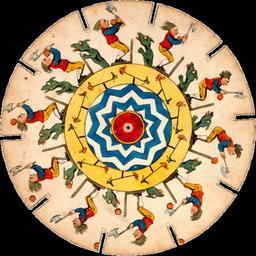 | Keywords: The bogle.gif Optical illusion disc which is spun displaying the illusion of motion of a couple on a seesaw in a circle at the center of the disc and a man with an ax attempting to chop a lizard in a circle at the outer edge of the disc Part of McLean ™s Optical Illusions or Magic Panorama a boxed set of 12 discs Hand-colored lithograph LOC-image cph 3g08086 pnp 1833 author Published by Thomas McLean PD-retouched-user Racconish 1833 in England Phenakistoscope PD-old-100 | ||||