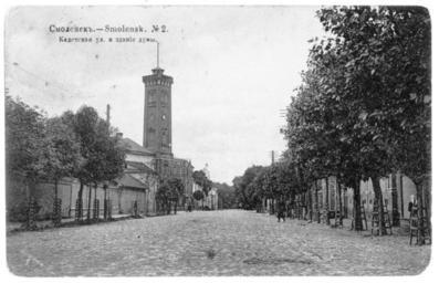 | Keywords: The Cadet street 2.jpg en Cadet Street now - Communist In the background - the building of City Council ru Улица Кадетская ныне - Коммунистическая а заднем плане - здание го одской думы О игинальная отк ытка е установлены before 1917 года PD-RusEmpire 20th-century postcards Postcards of Smolensk |