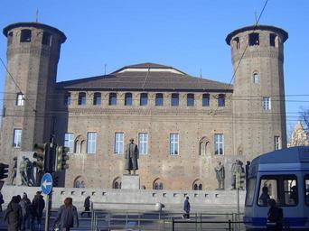 Keywords: The castle in Castle's square from behind.JPG Turin Palazzo Madama castle in Piazza Castello square from behind 2006-01-03 own assumed Cyclops1 Palazzo Madama Turin - Castello