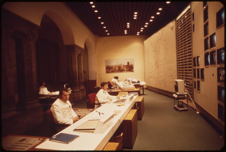 | Keywords: THE CENTRAL POLICE CONTROL STATION, MANNED 24 HOURS A DAY CONTROLS ALL TRAFFIC LIGHTS. RECEIVES REMOTE TV INPUTS FROM... - NARA - 551903.jpg Scope and content General notes 551903 Local identifier 412-DA-9418 Environmental Protection Agency 12/02/1970 - NARA-Author Okamoto Yoichi R Yoichi Robert 1915- Photographer 2987665 <br /> Munich Oberbayern Bavaria Germany Europe inhabited place 4185792 48 133 11 583 <br /> Still Picture Records Section Special Media Archives Services Division NWCS-S National Archives at College Park 8601 Adelphi Road College Park MD 20740-6001 09/1973 Record group Record Group 412 Records of the Environmental Protection Agency 1944 - 2006 Record group ARC 708 DOCUMERICA The Environmental Protection Agency's Program to Photographically Document Subjects of Environmental Concern compiled 1972 - 1977 Series ARC 542493 File unit File unit ARC Variant control numbers Agency-Assigned Identifier 157/58/009418<br /> NAIL Control Number NWDNS-412-DA-9418 Other versions <gallery> File THE_CENTRAL_POLICE_CONTROL_STATION _MANNED_24_HOURS_A_DAY_CONTROLS_ALL_TRAFFIC_LIGHTS _RECEIVES_REMOTE_TV_INPUTS_FROM _-_NARA_-_551903 tif tif File THE_CENTRAL_POLICE_CONTROL_STATION _MANNED_24_HOURS_A_DAY_CONTROLS_ALL_TRAFFIC_LIGHTS _RECEIVES_REMOTE_TV_INPUTS_FROM _-_NARA_-_551903 jpg jpg </gallery> NARA-cooperation PD-USGov 1973 in Munich |
