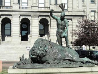| Keywords: The Closing Era by Preston Powers - DSC01257.JPG The Closing Era by Preston Powers 1842 - 1904 outside the Colorado State Capitol in Denver Colorado USA Created in 1893 for the Chicago World's Fair This statue is now in the public domain I took this photograph 2011-07-29 11 18 53 Daderot Public domain The Closing Era by Preston Powers |