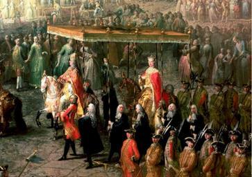| Keywords: The Coronation Procession of Joseph II (detail).jpg Artwork Creator Martin van Meytens > 1764 Oil on canvas Institution Kunsthistorisches Museum Weltliche und Geistliche Schatzkammer http //www posters2prints com/the-coronation-procession-of-joseph-ii-1741-90-emperor-of-germ-giclee-print-pr-83325 html other versions PD-old-100 DEFAULTSORT 1764 Martin van Meytens Paintings by Martin van Meytens in the Kunsthistorisches Museum Paintings in the Secular and Ecclesiastical Treasury Coronation of Joseph II Holy Roman Emperor Paintings of Joseph II Holy Roman Emperor 1764 portrait paintings 18th-century history paintings 18th-century oil on canvas paintings in Austria 18th-century people of Austria 18th-century people of Germany Horse riding in paintings Paintings by Martin van Meytens with fur Giclée Fur fashion in 1765 |