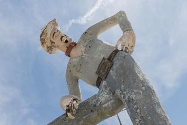 | Keywords: The deteriorating remains of "Tex Randall," a very big Texan (47 feet tall and weighing seven tons) erected in the city of Canyon in the Texas panhandle by industrial-arts teacher Harry Wheeler in LCCN2014633870.tif 1 photograph digital tiff file color Notes Tex is constructed of concrete with an internal structure of pipe rebar and wire mesh He originally wore real denim jeans and a red checkered shirt courtesy of a local tent and awning store He casually held a giant cigarette in one hand His sturdy design has helped him survive 100-mph winds along with a network of steel struts and cable anchoring him to the ground As he aged Tex was hobbled when a semi-trailer truck smashed one of his feet and later a sniper shot away his smoke A local restoration campaign saved the giant cowpoke in 1989 when a spur tastefully replaced the dangling cigarette and another such effort was underway as of the date of this photograph in 2014 ; Title date and keywords based on information provided by the photographer ; Gift; The Lyda Hill Foundation; 2014; DLC/PP-2014 054 ; Forms part of Lyda Hill Texas Collection of Photographs in Carol M Highsmith's America Project in the Carol M Highsmith Archive ; Credit line The Lyda Hill Texas Collection of Photographs in Carol M Highsmith's America Project Library of Congress Prints and Photographs Division 2014 Creator Carol M Highsmith Library of Congress Catalog http //lccn loc gov/2014633870 Image download https //cdn loc gov/master/pnp/highsm/29600/29670a tif Original url http //hdl loc gov/loc pnp/highsm 29670 No known restrictions on publication LOC-image highsm 29670 34 59 0891 0 N 101 55 7837 0 W alt 1084_source exif_heading PD-Highsmith Images uploaded by Fæ Lyda Hill Texas Collection of Photographs in Carol M Highsmith's America Project in the Carol M Highsmith Archive The Lyda Hill Texas Collection of Photographs in Carol M Highsmith's America Project Library of Congress Prints and Photographs Division Photographs by Carol M Highsmith |