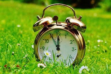Keywords: the eleventh hour disaster alarm clock clock ring the bell dial pointer hours time indicating time of time meadow flowers green