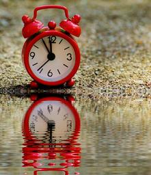 Keywords: the eleventh hour disaster alarm clock mirroring water bank clock ring the bell dial pointer hours time indicating time of time