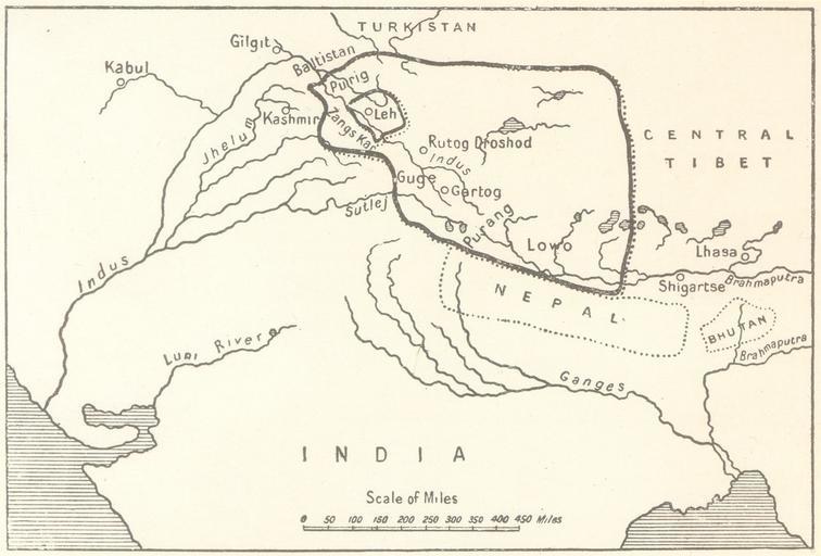 Keywords: The empire of King Tsewang Rnam Rgyal 1., and that of King Jamyang Rnam Rgyal., about 1560 and 1600 A.D.jpg en The empire of King Tsewang Rnam Rgyal 1 and that of King Jamyang Rnam Rgyal about 1560 and 1600 A D as depicted in A History of Western Tibet by A H Francke 1907 republished as A History of Ladakh with Critical Introduction and Annotations by S S Gergan and F M Hassnain depicting not just the Aksai Chin but also inter alia Rudokh and Guge and the area to the west of the ridges which separate the plateau of Tibet from the highlands of Kashmir wherein are the Aling Kangri and Mavang Kangri peaks to the south of the Pulu Pass at the point where the Kuen Lun Range in Kashmir which runs southeast to northwest and the Altyn Tagh range in Tibet running southwest to northeast converge forming a V shape and culminating near the vicinity of Mayum La as integral part of Ladakh 2006-01-01 A History of Western Tibet by A H Francke 1907 republished as A History of Ladakh A H Francke S S Gergan and F M Hassnan PD-old-80-1923 Uploaded with UploadWizard Historical kingdoms in India History of Jammu and Kashmir Maps of the history of Jammu and Kashmir History of Ladakh |