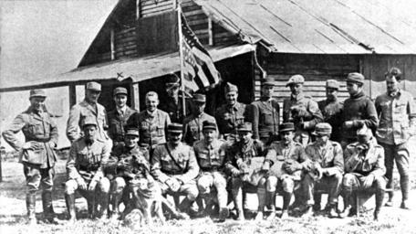 | Keywords: The Escadrille Lafayette in July 1917.jpg en The pilots of SPA 124 Escadrille Lafayette on 10 July 1917 at Chaudun France Standing left to right are Robert Soubiron James Doolittle Courtney Campbell Edwin Parsons Ray Bridgman William Dugan Douglas MacMonagle Walter Lowell Harold Willis Henry Jones David Peterson and Antoine de Maison-Rouge French Deputy Commander Seated left to right are Dudley Hill Didier Masson with Soda William Thaw Georges Thenault the French Commander Raoul Lufbery with Whiskey 'Chute' Johnson Stephen Bigelow and Robert L Rockwell A historic image provided by the U S Air Force 1917-07-10 http //www nationalmuseum af mil/shared/media/photodb/photos/050405-F-1234P-018 jpg<br/>at USAF fact sheet<br>http //www nationalmuseum af mil/shared/media/photodb/photos/050405-F-1234P-018 jpg Unknown or not provided PD-USAF PD-USGov Uploaded with UploadWizard Escadrille la Fayette Gervais Raoul Lufbery Walter Lovell Ž William Thaw II Ž Georges Thenault Ž |
