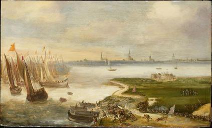 | Keywords: The failed attempt at Antwerp by Maurice of Orange - De mislukte aanslag op Antwerpen door prins Maurits, 17 mei 1605 (1699).jpg Southern Netherlands 1605-1699 Oil on canvas cm 31 5 52 5 Institution Rijksmuseum accession number SK-A-4848 object history ProvenanceEvent 1987 purchase Rijksmuseum Amsterdam credit line www rijksmuseum nl http //www rijksmuseum nl/ lang en Home https //www rijksmuseum nl/collectie/SK-A-4848 Info https //www rijksmuseum nl/assetimage2 jsp id SK-A-4848 Pic PD-old-100 Battles of the Eighty Years' War 1605 Paintings of battles Flemish Baroque paintings in the Rijksmuseum Amsterdam Anonymous 1605 Maurice of Nassau Conflicts in 1605 |