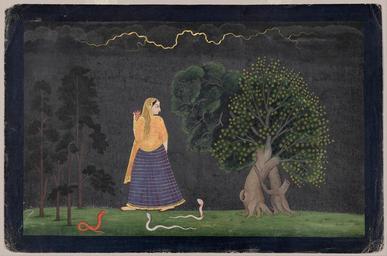 Keywords: The Family of Nainsukh - Heroine Rushing to Her Lover (Abhisarika Nayika ) - Google Art Project.jpg The 551308 Family of Nainsukh /collection/museum-of-fine-arts-boston/artwork/heroine-rushing-to-her-lover-abhisarika-nayika-the-family-of-nainsukh/534320/ The Family of Nainsukh Attributed to /artist/the-family-of-nainsukh/4128397/ 4128397 /collection/museum-of-fine-arts-boston/ Museum of Fine Arts Boston 509114 http //www mfa org/ 12/17/2011 11 00 22 AM /collection/museum-of-fine-arts-boston/artwork/heroine-rushing-to-her-lover-abhisarika-nayika-the-family-of-nainsukh/534320/ 1780 late 18th century Kangra style Punjab Hills Northern India Opaque watercolor and gold on paper 195 534320 False 1800 late 18th century 3/24/2012 3 09 43 AM 17 2612 http //www mfa org/collections/object/heroine-rushing-to-her-lover-abhisarika-nayika-149053 Ross-Coomaraswamy Collection Museum of Fine Arts Boston All Rights Reserved painting 1780 1810 w295 x h195 mm late 18th century False 1 51032448377581 Object heroine-rushing-to-her-lover-abhisarika-nayika-the-family-of-nainsukh Heroine Rushing to Her Lover Abhisarika Nayika h 295 City _state _country Kangra style Punjab Hills Northern India Reverse at center in Devanagari Leaden and lowering and heavy-laden clouds -- dight in a robe of black -- dark collyrium is seen upon thine eyes All thy limbs o'erspread with one dark hue -- thy bodice deeply dyed in dark cova Lovely the jet-black silken robe a nd all they gear becoming -- the black braid beauteous on they back let fall At such times in such a guise when you meet your Krishna all your efforts will bear fruit Opaque watercolor and gold on paper special url_id qgGV_J7YgKTe9A PD-old-100 Google Art Project works by Nainsukh Family Nainsukh Family Ashta Nayika Drawings in the Museum of Fine Arts Boston