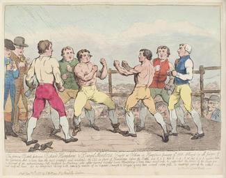 | Keywords: The famous battle between Richard Humphreys and Daniel Mendoza...' (Richard Humphries; Daniel Mendoza) by Samuel William Fores.jpg The famous battle between Richard Humphreys and Daniel Mendoza ' Richard Humphries; Daniel Mendoza by Samuel William Fores floruit 1841 published 1788 See source website for additional information This set of images was gathered by User Dcoetzee from the National Portrait Gallery London website using a special tool According to the NPG's website the work was published prior to 1859 and so the author is reasonably presumed dead by 1939 D12369 1788 Samuel William Fores floruit 1841 PD-old-100 National Portrait Gallery London Daniel Mendoza Boxing in art 1788 engravings |