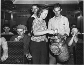 | Keywords: The Farm Security Administration of the Department of Agriculture arranges for the worker's movements and pays for... - NARA - 196465.jpg Scope and content General notes 196465 Local identifier Roosevelt Franklin D Franklin Delano 1882-1945 NARA-Author Office for Emergency Management Office of War Information 06/13/1942 - 09/15/1945 Photographer 1138532 <br /> Franklin D Roosevelt Library NLFDR 4079 Albany Post Road Hyde Park NY 12538-1999 ca 05/1943 Record group Collection FDR-PHOCO Franklin D Roosevelt Library Public Domain Photographs 1882 - 1962 Record group ARC 1184 Franklin D Roosevelt Library Public Domain Photographs compiled 1882 - 1962 Series ARC 195301 File unit File unit ARC Variant control numbers NAIL Control Number NLR-PHOCO-A-66285 6 Other versions <gallery> File The_Farm_Security_Administration_of_the_Department_of_Agriculture_arranges_for_the_worker's_movements_and_pays_for _-_NARA_-_196465 tif tif File The_Farm_Security_Administration_of_the_Department_of_Agriculture_arranges_for_the_worker's_movements_and_pays_for _-_NARA_-_196465 jpg jpg </gallery> NARA-cooperation PD-USGov Workers in the United States Farm Security Administration Drinking water Train interiors in the United States 1943 in the United States |