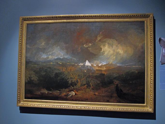 Keywords: The Fifth Plague of Egypt, New Orleans Museum of Art.jpg This painting was done by British painter Joseph Mallord William Turner in 1800 for the Royal Academy exhibition in London This painting depicts hail which was the seventh plague as described in the Book of Exodus rather than the death of livestock which was the actual fifth plague This painting actually belongs to the Indianapolis Museum of Art home to the largest Turner collection outside the UK The painting came to New Orleans as a result of a Super Bowl wager between the two museums at the beginning of 2010 where the losing city's museum loans an artwork to the winning city's museum for three months 2010's Super Bowl pitted the Indianapolis Colts against the New Orleans Saints and the Saints' victory was a huge morale booster for a town that had been devastated by Hurricane Katrina in 2005 WHO DAT GEAUX SAINTS Speaking of Indianapolis Museum of Art I had planned to visit it during my week-long business trip to Indianapolis in April 2008 but scrapped that when the trip turned extremely sour and I ended up going home a day early Glad to see at least this painting under much more pleasant circumstances Flickr http //flickr com/photos/56619626 N05/8229464002 The Fifth Plague of Egypt New Orleans Museum of Art 2010-05-30 10 49 10 http //www flickr com/people/56619626 N05 InSapphoWeTrust User Flickr upload bot/upload 19 33 9 December 2012 UTC Infrogmation cc-by-sa-2 0 Original painting is PD-old-100 The Fifth Plague of Egypt Turner - Indianapolis Museum of Art - DSC00690 JPG Joseph Mallord William Turner - The Fifth Plague of Egypt - Google Art Project jpg Paintings in the New Orleans Museum of Art Paintings by Joseph Mallord William Turner in the United States 1800 paintings Fifth Plague of Egypt Cattle Plague Template artwork possible |