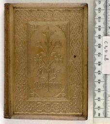 | Keywords: The Form of the solemnization of Matrimony. (Illuminated by Owen Jones.) - Upper cover (c30a8).jpg Style Panel design Publishers binding Retrospective imitations of earlier styles Interlacing ribbon/strapwork Floral; Caption Upper cover; Colour White / cream; Edge Gilt exhibition history Decorative Technique Blocked in gold Blocked in relief; Cover Material Calf Designed by Owen Jones The half title page has /The form of/ Solemnization/ of/ Matrimony/ The title page verso has /Illuminated by Owen Jones/ Each leaf is printed on the recto and the verso only with ornamental borders in gold red and blue Bevelled boards Beige calf The turn-ins are blocked in gold with repeating semi-circles and with a leaf and bud pattern Both covers blocked identically apart from the centres The borders are blocked in gold with oval-shaped linked straps blocked in relief An inner rectangle is formed by two fillets blocked in gold with two crossing leaves blocked in gold on each inner corner On the centre of the lower cover a lozenge-shaped series of straps is blocked in relief with blocking in gold surrounding them and highlighting them On the centre of the upper cover a single plant stem is blocked in gold from the base upwards The stem bisects the title words / Ho/ ly Matri/ mony which are blocked in gold in gothic letters Above the title the plant has two open flowers and two nearly open flowers plus three buds - all blocked in gold The spine is blocked in gold and in relief Two fillets are blocked in gold at the head and at the tail The rest of the spine is blocked with straps in relief with gold blocking in between Text copyright Edmund M B King and available under a CC0 license object history Text 1849; London; Unspecified object type Cc-zero place of creation Binding England place of discovery Victorian publishers' bindings / London Library Association c1985 p 153 McLean R Victorian book design and colour printing London 1972 p 94 British Library image http //www bl uk/catalogues/bookbindings/LargeImage aspx RecordId 020-000002790 ImageId ImageId 41000 Copyright BL The Form of the solemnization of Matrimony Illuminated by Owen Jones Uploaded with GWToolset The Form of the solemnization of Matrimony Illuminated by Owen Jones - Upper cover c30a8 http //www webarchive org uk/bldatasets/bindings/5507_4 jpg 19th-century bookbinding Bookbinding British Library Bookbindings |