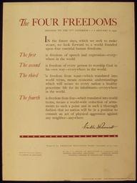 | Keywords: THE FOUR FREEDOMS - MESSAGE TO THE 77TH CONGRESS - NARA - 515601.tif Scope and content General notes 515601 Local identifier 44-PA-1918 Office for Emergency Management Office of War Information Domestic Operations Branch Bureau of Special Services 03/09/1943 - 09/15/1945 Still Picture Records Section Special Media Archives Services Division NWCS-S National Archives at College Park 8601 Adelphi Road College Park MD 20740-6001 1941 - 1945 Record group Record Group 44 Records of the Office of Government Reports 1932 - 1947 Record group ARC 373 World War II Posters compiled 1942 - 1945 Series ARC 513498 File unit File unit ARC Variant control numbers NAIL Control Number NWDNS-44-PA-1918 yes Other versions <gallery> File THE_FOUR_FREEDOMS_-_MESSAGE_TO_THE_77TH_CONGRESS_-_NARA_-_515601 tif tif File THE_FOUR_FREEDOMS_-_MESSAGE_TO_THE_77TH_CONGRESS_-_NARA_-_515601 jpg jpg </gallery> NARA-cooperation PD-USGov World War II posters from the United States NARA TIF images with categorized JPGs |