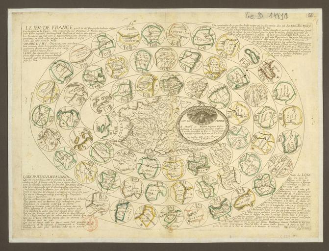 | Keywords: The Game of France WDL3026.png Artwork ru Дюваль Пье 1619-1683 fr Duval Pierre 1619-1683 en Duval Pierre 1619-1683 zh 瓦尔 皮埃尔 1619-1683 pt Duval Pierre 1619-1683 ar دوفال بيير 1619-1683 es Duval Pierre 1619-1683 ru Иг а Ф анции fr Le Jeu de la France en The Game of France zh 法国的博弈 pt O Jogo da França ar لعبة فرنسا ru Пье Дюваль 1619-1683 гг был племянником великого ф анцузского геог афа иколя Сансона 1600-1667 гг кото ый заслужил п аво называться ко олевским геог афом В пе иод с 60-х по 70-е годы XVII века он опубликовал большое количество атласов и абот по геог афии Дюваль был пе вым во Ф анции кто п едложил идею геог афических иг асши яющих к угозо и однов еменно служащих азвлечением <i> Jeu de France </i> Ф анцузская иг а это иг а типа го ки и лестницы состоящая из шестидесяти т ех квад атов каждый из кото ых соответствует одной п овинции к оме последнего соде жащего ка ту всего ко олевства В иг е используются клише и сте еотипы па ижан об особенностях ф анцузских п овинций Б етань известна своим аспутством Ту своими п ек асными улочками Фо ез ножами и ножницами Понтье как теат военных действий для а мии ко оля ассоциация с недавно заве шившейся ф анко-испанской войной <br> астольные иг ы; Об азовательные иг ы; Геог афический досуг fr Pierre Duval 1619-83 était un neveu du grand géographe français Nicolas Sanson 1600-67 qui parvint grâce à ses propres compétences à devenir géographe du roi Dans les années 1660 et 1670 il publia un grand nombre d'atlas et de travaux géographiques Duval fut le premier en France à concevoir des jeux géographiques destinés à informer et instruire tout en divertissant <i>Jeu de France</i> est un jeu de l'oie composé de 63 cases chacune représentant une province sauf la dernière qui contient une carte du royaume dans son ensemble Le jeu offre un aperçu des clichés et stéréotypes que les Parisiens appliquaient aux provinces françaises La Bretagne est connue pour sa débauche Tours pour ses jolies avenues Forez pour ses couteaux et ciseaux et Ponthieu fut le théâtre des opérations pour l'armée du roi une référence à la récente guerre franco-espagnole <br>Jeux de société; Jeux éducatifs; Loisirs géographiques en Pierre Duval 1619-83 was a nephew of the great French geographer Nicolas Sanson 1600-67 who rose to become geographer to the king in his own right In the 1660s and 1670s he published a large number of atlases and geographic works Duval was the first in France to conceive of geographical games that aimed to inform and instruct while providing entertainment <i>Jeu de France</i> The game of France is a chutes-and-ladders game made up of 63 squares each representing a province except for the last which contains a map of the entire kingdom The game offers insight into the clichés and stereotypes that Parisians applied to the French provinces Brittany is noted for its debauchery Tours for its lovely avenues Forez for its knives and scissors and Ponthieu as a theater of operations for the king s army a reference to the recent Franco-Spanish war <br>Board games; Educational games; Geographical recreations zh 皮埃尔· 瓦尔(1619-83 年)是法国伟大 理学家尼古拉斯·桑 (1600-67 年)的侄子,尼古拉斯·桑 曾凭 自己的努力成为 国王御用 理学家 17 世纪 60 年代和 70 年代 间,皮埃尔· 瓦尔出版了大量的 图集和 理著 瓦尔是法国首位想出 理游戏的人,这些 理游戏能给人提供信息和指南,同时还具 定的娱乐 <i>Jeu de France</i> (法兰西游戏)是 种滑 与梯子游戏,游戏中使用 63 个方 ,除了 后 个方 外每 个方 都代表 个 , 后 个方 中包含 整个王国的 图 该游戏提供了巴黎人对法国 份固 想法和定型观点的深入 法 布列塔尼以其不道德著称,图尔以其 丽的街道闻名,Forez 的 和剪 很出名, Ponthieu 则是国王军队的 处战区(参照 近的法国和西班牙战争) <br>棋盘游戏; 教育游戏; 理休闲娱乐活动 pt Pierre Duval 1619-83 era sobrinho do grande geógrafo francês Nicolas Sanson 1600-67 e ascendeu `a posição de geógrafo do rei por seus próprios méritos Nas décadas de 1660 e 1670 ele publicou um grande número de atlas e trabalhos geográficos Duval foi o primeiro na França a criar jogos geográficos que objetivavam informar e instruir ao mesmo tempo em que proporcionavam divertimento <i>Jeu de France</i> O jogo da França é um jogo de tabuleiro e dados composto de 63 quadrados cada um representando uma província com exceção da última que contém um mapa de todo o reino O jogo oferece explicações dos clichês e estereótipos que os parisienses aplicavam às províncias francesas Brittany é caracterizada por sua libertinagem Tours por suas adoráveis avenidas Forez por suas facas e tesouras e Ponthieu como um teatro de operações do exército do rei uma referência à recente guerra francoespanhola <br>Jogos de tabuleiro; Jogos educativos; Recreações geográficas ar كان بيير دوفال 1619-83 ابن شقيق رسام الخرائط الفرنسي العظيم نيكولاس سانسون 1600-67 الذي ارتقى إلى مرتبة جغرافي الملك في حد ذاته وفي 