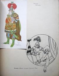 | Keywords: The Golden Cockerel (opera) by Bilibin - Polkan.JPG Пушкин А Зимин С автог аф Золотой петушок небылица в лицах в постановке опе ы С Т Зимина Эскизы деко аций и костюмов И Билибина Т-во ско опечатни А А Левенсон 1909 58 с ил по т 23 5 х 18 7 см http //www vnikitskom ru/antique/auction/4/837/ 1909 Ivan Bilbin The Golden Cockerel opera by Bilibin Files uploaded by Shakko from various sources PD-old | ||||