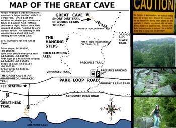 | Keywords: the great cave thegreatcave acadia national park acadianationalpark maps of acadia mapsofacadia precipice trail precipicetrail mount desert island mountdesertisland abandoned trails abandonedtrails lost trails losttrails ghost trails ghosttrails phantom trails phantomtrails secrets of acadia secretsofacadia text Old books talked about this mysterious Great cave, old newspapers told of it, but until recently the great Cave remained just that - a story with no proof such a Cave even existed. No known maps could be found of it online or in any library, but today we not only know where it is, there are a number of photos of it online as well as maps and videos. But not all are happy with this - because for many years the Mystery of the Great Cave was only known to Park rangers and a handful of others who swore never to tell where the Great Cave lay. My map will get you there and it also has gps numbers to help as well. After the Precipice, Beehive and East Face Trail were built, it was decided that the best way to attract more hikers to those trails was to build a trail to this great cave. It worked, maybe too well, and years later the Great Cave trail was abandoned, and for many years lost to time. Old accounts tell how entire families would hike to the great cave with picnic baskets in hand, and that the opening of the great cave was 100 feet wide and 100 feet high and ran back into the mountainside another 100 feet or so. Accounts even boasted that the opening was large enough to fit a small plane into. Well - perhaps, but that small plane had better be carried into the cave in pieces. You see, the great cave is indeed 100 feet tall and does go some distance into the mountain side, but it is no where near 100 feet wide, Do a google search for THE GREAT CAVE OF ACADIA NATIONAL PARK and you should be able to find photos and even videos on it. The great cave trail is an abandoned trail and is unmarked and unmaintained so use caution when hiking in such areas and stay safe. Old books talked about this mysterious Great cave, old newspapers told of it, but until recently the great Cave remained just that - a story with no proof such a Cave even existed. No known maps could be found of it online or in any library, but today we not only know where it is, there are a number of photos of it online as well as maps and videos. But not all are happy with this - because for many years the Mystery of the Great Cave was only known to Park rangers and a handful of others who swore never to tell where the Great Cave lay. My map will get you there and it also has gps numbers to help as well. After the Precipice, Beehive and East Face Trail were built, it was decided that the best way to attract more hikers to those trails was to build a trail to this great cave. It worked, maybe too well, and years later the Great Cave trail was abandoned, and for many years lost to time. Old accounts tell how entire families would hike to the great cave with picnic baskets in hand, and that the opening of the great cave was 100 feet wide and 100 feet high and ran back into the mountainside another 100 feet or so. Accounts even boasted that the opening was large enough to fit a small plane into. Well - perhaps, but that small plane had better be carried into the cave in pieces. You see, the great cave is indeed 100 feet tall and does go some distance into the mountain side, but it is no where near 100 feet wide, Do a google search for THE GREAT CAVE OF ACADIA NATIONAL PARK and you should be able to find photos and even videos on it. The great cave trail is an abandoned trail and is unmarked and unmaintained so use caution when hiking in such areas and stay safe. |