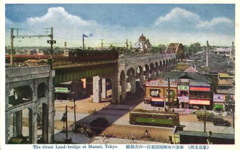 | Keywords: The Great Land-Bridge at Mansei, Tokyo..jpg ja ( 京名 )お茶の水両国間 洋 の大陸橋 1934年以前 ja 絵葉書( 京名 ) author Custom license marker 2014 09 13 PD-Japan-oldphoto Uploaded with UploadWizard Railway viaducts in Japan Onari-kaidō Overpass Hatagochō Viaduct Matsuzumichō Overpass Built in Japan in 1932 Bridges completed in 1932 Akihabara Main Street Trams of Tokyo Metropolitan Bureau of Transportation Toden Ueno Line defunct Tokyo Resurrection Cathedral History of Akihabara 1934 in Akihabara | ||||