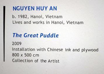 | Keywords: the great puddle by nguyen huy an text The Great Puddle 2009 Chinese ink and plywood The deep black abyss of Chinese ink and its hypnotic scent immediately conjure notions of a literary history rich in tradition and culture. In The Great Puddle however, this rich and illustrious history is interrogated and the ink's reflective surface reveals as much as it obscures. Its opaque darkness also hints at hidden secrets lurking beyond the dark corners of the pool. The artwork is a commentary on the lingering scent of power and corruption, as metaphorically represented by the form of a bureaucrat's writing table. While the ink attempts to conceal the 'shadow' of dirty dealings, its reflective surface ironically reflects reality and becomes, in and of itself, a permanent black shadow in which all forgotten events resurface. www.singaporebiennale.org/artist_nguyen_huy_an.html The Great Puddle 2009 Chinese ink and plywood The deep black abyss of Chinese ink and its hypnotic scent immediately conjure notions of a literary history rich in tradition and culture. In The Great Puddle however, this rich and illustrious history is interrogated and the ink's reflective surface reveals as much as it obscures. Its opaque darkness also hints at hidden secrets lurking beyond the dark corners of the pool. The artwork is a commentary on the lingering scent of power and corruption, as metaphorically represented by the form of a bureaucrat's writing table. While the ink attempts to conceal the 'shadow' of dirty dealings, its reflective surface ironically reflects reality and becomes, in and of itself, a permanent black shadow in which all forgotten events resurface. www.singaporebiennale.org/artist_nguyen_huy_an.html |
