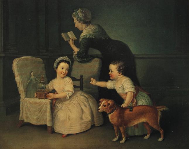 | Keywords: The grey children.jpg Artwork Creator Hugh Douglas Hamilton George Harry Grey and Lady Henrietta Grey as children with their nurse 1767 oil on canvas cm 64 7 81 2 The Stamford Collection / National Trust Dunham Massey Cheshire accession number 932368 http //www nationaltrustcollections org uk/object/932368 The National Trust object history bequeathed with the house estate and all the contents of Dunham Massey by Roger Grey 10th Earl of Stamford credit line exhibition history photograph PD-old-100 Hugh Douglas Hamilton Paintings of children 18th-century genre paintings Bird cages in art Dolls in art Mob caps People with dogs in art Young siblings in art |