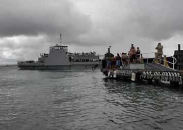 Keywords: The GTMO Jump Off DVIDS302399.jpg en Sailors Marines and civilians assigned to the Naval Station Guantanamo Bay Cuba perform the ˜GTMO Jump Off ™ while the base ferry gets underway Base residents perform the jump off to honor fellow service members and friends who are permanently leaving GTMO 2010-07-24 Chief Petty Officer Bill Mesta https //www dvidshub net/image/302399 100724-N-+++++-002 2010-07-24 14 45 NAVAL STATION GUANTANAMO BAY CUBA CU PD-USGov-Military-Navy Naval Station Guantanamo Bay Images from DoD uploaded by Fæ