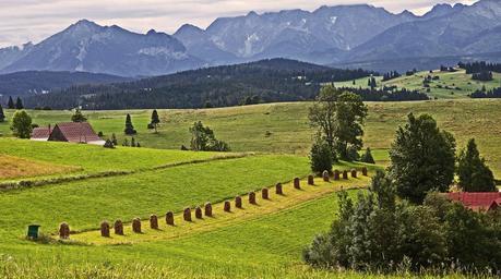Keywords: the high tatras tatry poland mountains podhale polish tatras large view meadow haymaking bundles of hay