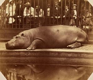 | Keywords: The Hippopotamus at the Regents Park Zoo, ca. 1855.jpg Accession Number 1977 0742 0004 Maker Count de Montizon Spanish 1822 - 1887 Title The Hippopotamus at the Zoological Gardens Regent's Park London Date ca 1855 Medium albumen print Dimensions Image 11 1 x 12 7 cm 4 3/8 x 5 in Mount 23 x 29 cm 9 1/16 x 11 7/16 in George Eastman House Collection http //www eastmanhouse org/inc/collections/photography php About the Collection · http //blog eastmanhouse org Blog · http //www eastmanhouse org/flickr/index php pid 1977 0144 0050MP Reproductions Image Licensing http //www flickr com/photos/george_eastman_house/5229063953/ The Hippopotamus at the Zoological Gardens Regent's Park London Uploaded by PDTillman http //www flickr com/people/7167652 N06 George Eastman House from Rochester NY United States http //www eastmanhouse org/flickr/statement php George Eastman House Flickr Commons <gallery> File Count de Montizon Spanish - The Hippopotamus at the Zoological Gardens Regent's Park - Google Art Project jpg File Obaysch 1852 gif File Obaysch 1852 jpg File 1852Hippo jpg </gallery> Multi-license PD-old Flickr-no known copyright restrictions File Upload Bot Magnus Manske September 23 2011 Photographs in the George Eastman House Collection Obaysch the Hippo Juan Count of Montizón 1852 in London Resting animals Animals facing left Black and white photographs of animals |