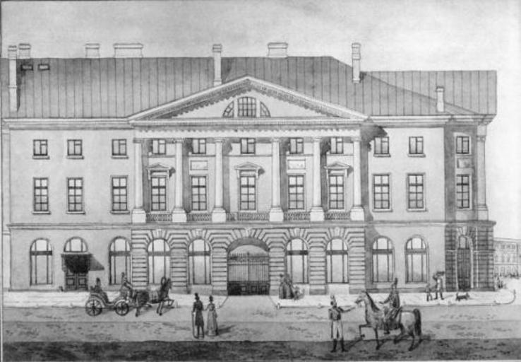 | Keywords: The house with four colonnades.jpg The house with four colonnades from Italianskaya Street the watercolor by unknown painter 1820s House built by project A Kokorinov in 1750-60s facades rebuilt in 1809-10 arch S Bernikov L Rusca Дом с четы ьмя колоннадами со сто оны Итальянской улицы Аква ель неизвестного художника 1820-е гг Пост оен в 1750-60-х гг п едположительно по п оекту а х А Ф Коко инова фасады пе ест оены в 1809-10 а х С П Бе ников Л Руска http //encspb ru/image/2803979005/1 encspb ru s 1820 Author is unknown PD-Art Architectural drawings of buildings in Saint Petersburg Paintings of Saint Petersburg Italianskaya Street Luigi Rusca |