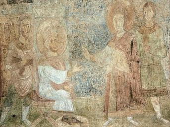 | Keywords: The Inquisition of St. George by the Emperor Diocletian - Google Art Project.jpg commons date commons medium commons dimensions commons institution commons location commons references commons object_history commons exhibition_history commons credit_line commons inscriptions commons notes commons accession_number commons source commons permission commons other_versions commons zoom core title This is a scene from the life cycle of the saint George is a successful court commander He was disappointed after the persecution of Christians and distributed his property among the poor He proclaimed himself a Christian in the presence of the Emperor Diocletian The scene is full of inner tension George appears before the Emperor Diocletian full of confidence in his rightness The emperor is sitting on the throne Behind him there is a figure of a guard Diocletian tries to stop George with a gesture of his right hand George raises his hand with a gesture known from ancient times as a gesture of appeal His figure demonstrates confidence core creator Unknown core date dateCreated 1000 core type monumental painting fresco google display_date 1000 google is_artproject TRUE google is_gigapixel FALSE google is_secured TRUE google partner/id 000000000804b21e google picasa_token NcY98yAKeJDDo4AnCS4EQmi5pNI special url_id mAHk3huaEIQFQA google partner/name St Sophia of Kyiv special partner/name_no_lang St Sophia of Kyiv PD-old-100-1923 Google Art Project works by unknown artist Saint Sophia Cathedral frescos Saint George's martyrdom |