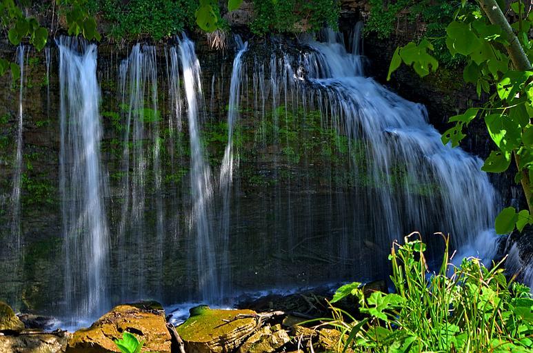 Keywords: balls falls ballsfalls waterfall water spring trees park niagara escarpment pentax art pentaxart cc0 jordan ontario jordanontario darktable landscape outdoor serene Southern Ontario is blessed with the many parks along the Niagara Escarpment. Although Niagara Falls is the most well know, there are dozens of other smaller, and in my opinion more interesting, falls. The two water falls along 20 Mile Creek, like many other falls along the Niagara Escarpment, were developed in the early 19th century for mills that harnessed the power of the water falling over the escarpment precipice. Today, the falls are within the Ball's Falls Conservation Area (named after the Ball family that built grist, saw and woolen mills here). The upper falls, accessible by a well maintained hiking trail is particularly appealing. In the spring, once the trees become full, these falls appear almost tropical, plunging over the escarpment in a series of flows towards a pool below. The view of water falling over a cliff into a pool is very inviting. A refreshing shower under the falls and a dip in the pool seem the ideal activity on a warm spring afternoon. The falls however look more inviting than they are as the pool is shallow with many sharp jagged rocks. Swimming is prohibited. There is no mention of diving, but that as well is very inadvisable. Admiring, relaxing to the sound of the water, reading a book and taking photos on the other hand are encouraged! Southern Ontario is blessed with the many parks along the Niagara Escarpment. Although Niagara Falls is the most well know, there are dozens of other smaller, and in my opinion more interesting, falls. The two water falls along 20 Mile Creek, like many other falls along the Niagara Escarpment, were developed in the early 19th century for mills that harnessed the power of the water falling over the escarpment precipice. Today, the falls are within the Ball's Falls Conservation Area (named after the Ball family that built grist, saw and woolen mills here). The upper falls, accessible by a well maintained hiking trail is particularly appealing. In the spring, once the trees become full, these falls appear almost tropical, plunging over the escarpment in a series of flows towards a pool below. The view of water falling over a cliff into a pool is very inviting. A refreshing shower under the falls and a dip in the pool seem the ideal activity on a warm spring afternoon. The falls however look more inviting than they are as the pool is shallow with many sharp jagged rocks. Swimming is prohibited. There is no mention of diving, but that as well is very inadvisable. Admiring, relaxing to the sound of the water, reading a book and taking photos on the other hand are encouraged!