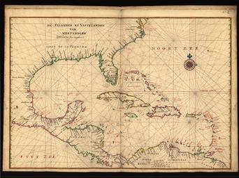 Keywords: The Islands and Mainland of the West Indies WDL10078.png Artwork ru Винкебунс Джоан 1617 1670 гг fr Vinckeboons Joan 1617-1670 en Vinckeboons Joan 1617-1670 zh 琼·维奇布斯,1617-1670 年 pt Vinckeboons Joan 1617-1670 ar جون فينكيبونز، 1617-1670 es Vinckeboons Joan 1617-1670 ru Ост ова и мате ик Вест-Индии fr Les îles et le continent des Indes occidentales en The Islands and Mainland of the West Indies zh 西印度的群岛和大陆 pt As ilhas e o continente das Índias Ocidentais ar الجُزُر واليابسة بغرب الإنديز ru Джоан Винкебунс 1617 1670 гг голландский ка тог аф и г аве одился в семье художников фламандского п оисхождения Он аботал на голландскую Вест-Индскую компанию и в течение более 30 лет составлял ка ты кото ые использовались для то говых и военных т анспо тных пе евозок Он также был деловым па тне ом Джоана Блау одного из самых известных издателей ка т и атласов того в емени Винкебунс создал целую се ию из 200 укописных ка т кото ые использовались для составления атласов в том числе и знаменитого атласа Блау <em> Atlas Maior </em> а этой ка те выполненной около 1639 г с помощью пе а туши и аква ели изоб ажены побе ежья Севе ной и Южной Аме ики п отянувшиеся от Ви джинии че ез полуост ов Юкатан до Гайаны в Южной Аме ике а ка те изоб ажены бе еговая линия бе еговые о иенти ы потенциальные опасности для навигации ост ова поселения многочисленные локсод омии и к асиво ук ашенная оза вет ов а ка те отмечены анние испанские поселения на севе о-атлантическом побе ежье включающие Сент-Августин Санта-Элена и Ба а де ад е-де-Диос Чесапикский залив а ка те также указано асположение ост ова Гуанахани входящего в состав Багамских ост овов Рельеф изоб ажен г афически Ка та была частью укописного атласа п инадлежавшего голландской фи ме Ге а да Хюлста ван Келена кото ая публиковала мо ские атласы и сп авочники судоходства на п отяжении двух столетий После пе едачи фи мы по наследству атлас п иоб ел и азоб ал на отдельные ка ты книгото говец из Амсте дама Ф еде ик юлле кото ый в 1887 г п одал 13 ка т из атласа авто ом кото ого считается Винкебунс коллекционе у и библиог афу Ген и Ха иссу Ка та является частью коллекции Ген и Ха исса х анящейся в Библиотеке Конг есса <br>Атлантическое побе ежье Севе ная Аме ика ; Атлантическое побе ежье Южная Аме ика ; Ка ибский егион; Отк ытия и исследования; Рукописные ка ты; ексиканский залив; Испания Колонии; Вест-Индия fr Joan Vinckeboons 1617-1670 était un cartographe et graveur néerlandais issu d'une famille d'artistes d'origine flamande Employé de la Compagnie néerlandaise des Indes occidentales il a produit pendant plus de 30 ans des cartes destinées à la marine militaire et marchande néerlandaise Il a travaillé avec Joan Blaeu l'un des plus importants éditeurs de cartes et d'atlas de l'époque Vinckeboons a dressé une série de 200 cartes manuscrites qui ont été reproduites dans plusieurs atlas dont le célèbre <em>Atlas Maior</em> de Blaeu Cette carte datant de 1639 environ dessinée à la plume et à l'encre et peinte à l'aquarelle montre les côtes de l'Amérique du Nord et de l'Amérique du Sud s'étendant de la Virginie à la péninsule du Yucatan et à la Guyane en Amérique du Sud Décorée d'une rose des vents elle illustre le tracé et les caractéristiques des côtes les dangers de navigation les îles les établissements humains et de nombreuses loxodromies La carte indique les premières colonies espagnoles le long de la côte de l'Atlantique Nord notamment Saint Augustine Santa Elena et Barra de Madre de Dios baie de Chesapeake Elle montre également l'emplacement de l'île de Guanahani dans les Bahamas Le relief est représenté par des dessins Cette carte faisait partie d'un atlas manuscrit appartenant à l'entreprise néerlandaise de Gerard Hulst van Keulen qui publia des atlas marins et des manuels de navigation pendant plus de deux siècles la disparition de l'entreprise l'atlas fut racheté et fragmenté par le libraire d'Amsterdam Frederik Muller qui en 1887 vendit 13 cartes de l'atlas attribuées à Vinckeboons au collectionneur et bibliographe Henry Harrisse Cette carte fait partie de la collection Henry Harrisse à la Bibliothèque du Congrès <br>Côte atlantique Amérique du Nord ; Côte atlantique Amérique du Sud ; Région des Caraïbes; Découverte et exploration; Cartes manuscrites; Mexique Golfe du; Espagne--Colonies; Antilles en Joan Vinckeboons 1617 70 was a Dutch