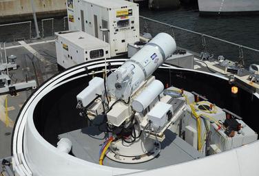 | Keywords: The Laser Weapon System (LaWS) is temporarily installed aboard USS Dewey. (8635970792).jpg SAN DIEGO July 30 2012 The Laser Weapon System LaWS temporarily installed aboard the guided-missile destroyer USS Dewey DDG 105 in San Diego Calif is a technology demonstrator built by the Naval Sea Systems Command from commercial fiber solid state lasers utilizing combination methods developed at the Naval Research Laboratory LaWS can be directed onto targets from the radar track obtained from a MK 15 Phalanx Close-In Weapon system or other targeting source The Office of Naval Research's Solid State Laser SSL portfolio includes LaWS development and upgrades providing a quick reaction capability for the fleet with an affordable SSL weapon prototype This capability provides Navy ships a method for Sailors to easily defeat small boat threats and aerial targets without using bullets U S Navy photo by John F Williams/Released 120730-N-PO203-141 Join the conversation http //www facebook com/USNavy www facebook com/USNavy http //www twitter com/USNavy www twitter com/USNavy http //navylive dodlive mil navylive dodlive mil https //www flickr com/photos/usnavy/8635970792/ The Laser Weapon System LaWS is temporarily installed aboard USS Dewey 2012-07-30 17 37 https //www flickr com/people/56594044 N06 Official U S Navy Page from United States of America PD-USNavy Official U S Navy Imagery https //flickr com/photos/56594044 N06/8635970792 2016-12-14 01 10 01 United States Government Work Naval ships of the United States Files from the U S Navy Flickr stream Files uploaded by Reguyla United States Navy |