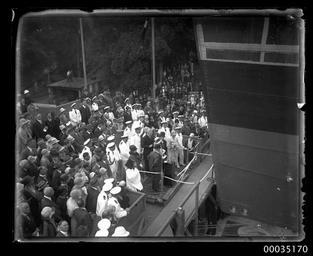 | Keywords: hood collection hoodcollection 35170 samuel j hood collection samueljhoodcollection hood hmas albatross hmasalbatross royal australian navy royalaustraliannavy navy naval vessel navalvessel sydney launch naval personnel navalpersonnel naval officers navalofficers officials navy event navyevent cockatoo island cockatooisland cockatoo island dockyards cockatooislanddockyards 1928 reverend a g rix reverendagrix lady ethel stonehaven ladyethelstonehaven lord john lawrence baird stonehaven lordjohnlawrencebairdstonehaven lord stonehaven lordstonehaven seaplane carrier seaplanecarrier ship warship ran hmas albatross (1928) hmasalbatross1928 seaplane tender seaplanetender royal navy royalnavy hms albatross hmsalbatross cockatoo docks and engineering company cockatoodocksandengineeringcompany cockatoo island dockyard cockatooislanddockyard shipyard ship launching shiplaunching blackandwhite monochrome photo border black and white This photograph depicts the launch of the Royal Australian Navy's first seaplane carrier HMAS ALBATROSS I on 23 February 1928 at Cockatoo Island Dockyard in Sydney. The woman at the centre of the photograph wearing the white hat and releasing the rope is Lady Ethel Stonehaven, wife of Lord John Lawrence Baird Stonehaven, the Governor-General of Australia. Lady Stonehaven launched the vessel and performed a ceremonial christening by releasing a bottle of Australian wine. The Reverend A G Rix is also visible in the photograph covering his head with a book after conducting a religious service also from the launching platform. This photo is part of the Australian National Maritime Museum’s Samuel J. Hood Studio collection. Sam Hood (1872-1953) was a Sydney photographer with a passion for ships. His 60-year career spanned the romantic age of sail and two world wars. The photos in the collection were taken mainly in Sydney and Newcastle during the first half of the 20th century. The ANMM undertakes research and accepts public comments that enhance the information we hold about images in our collection. This record has been updated accordingly. Photographer: Samuel J. Hood Studio Collection Object no. 00035170 This photograph depicts the launch of the Royal Australian Navy's first seaplane carrier HMAS ALBATROSS I on 23 February 1928 at Cockatoo Island Dockyard in Sydney. The woman at the centre of the photograph wearing the white hat and releasing the rope is Lady Ethel Stonehaven, wife of Lord John Lawrence Baird Stonehaven, the Governor-General of Australia. Lady Stonehaven launched the vessel and performed a ceremonial christening by releasing a bottle of Australian wine. The Reverend A G Rix is also visible in the photograph covering his head with a book after conducting a religious service also from the launching platform. This photo is part of the Australian National Maritime Museum’s Samuel J. Hood Studio collection. Sam Hood (1872-1953) was a Sydney photographer with a passion for ships. His 60-year career spanned the romantic age of sail and two world wars. The photos in the collection were taken mainly in Sydney and Newcastle during the first half of the 20th century. The ANMM undertakes research and accepts public comments that enhance the information we hold about images in our collection. This record has been updated accordingly. Photographer: Samuel J. Hood Studio Collection Object no. 00035170 |