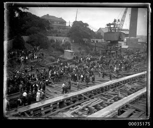 | Keywords: hood collection hoodcollection 35175 ship warship royal australian navy royalaustraliannavy ran hmas albatross (1928) hmasalbatross1928 hmas albatross hmasalbatross seaplane tender seaplanetender royal navy royalnavy hms albatross hmsalbatross seaplane carrier seaplanecarrier cockatoo docks and engineering company cockatoodocksandengineeringcompany cockatoo island dockyard cockatooislanddockyard cockatoo island cockatooisland slipway ship launching shiplaunching samuel j hood collection samueljhoodcollection hood navy naval vessel navalvessel sydney launch naval personnel navalpersonnel naval officers navalofficers officials navy event navyevent cockatoo island dockyards cockatooislanddockyards 1928 reverend a g rix reverendagrix lady ethel stonehaven ladyethelstonehaven lord john lawrence baird stonehaven lordjohnlawrencebairdstonehaven lord stonehaven lordstonehaven blackandwhite photo border monochrome outdoor black and white This photograph depicts the launch of the Royal Australian Navy's first seaplane carrier HMAS ALBATROSS I on 23 February 1928 at Cockatoo Island Dockyard in Sydney. This photo is part of the Australian National Maritime Museum’s Samuel J. Hood Studio collection. Sam Hood (1872-1953) was a Sydney photographer with a passion for ships. His 60-year career spanned the romantic age of sail and two world wars. The photos in the collection were taken mainly in Sydney and Newcastle during the first half of the 20th century. The ANMM undertakes research and accepts public comments that enhance the information we hold about images in our collection. This record has been updated accordingly. Photographer: Samuel J. Hood Studio Collection Object no. 00035175 This photograph depicts the launch of the Royal Australian Navy's first seaplane carrier HMAS ALBATROSS I on 23 February 1928 at Cockatoo Island Dockyard in Sydney. This photo is part of the Australian National Maritime Museum’s Samuel J. Hood Studio collection. Sam Hood (1872-1953) was a Sydney photographer with a passion for ships. His 60-year career spanned the romantic age of sail and two world wars. The photos in the collection were taken mainly in Sydney and Newcastle during the first half of the 20th century. The ANMM undertakes research and accepts public comments that enhance the information we hold about images in our collection. This record has been updated accordingly. Photographer: Samuel J. Hood Studio Collection Object no. 00035175 |