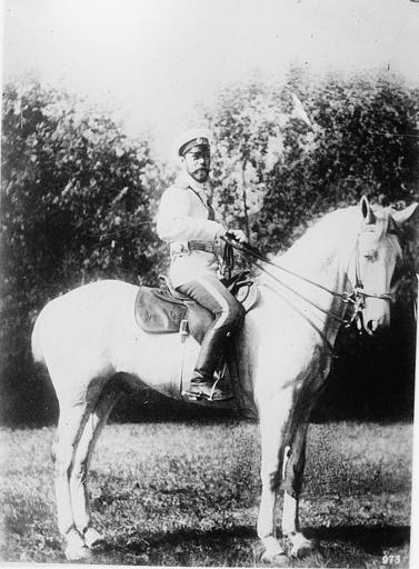 | Keywords: The Library of Congress - The Czar -on horse- (LOC) (pd).jpg Bain News Service publisher The Czar on horse no date recorded on caption card 1 negative glass ; 5 x 7 in or smaller Notes Title from unverified data provided by the Bain News Service on the negatives or caption cards Forms part of George Grantham Bain Collection Library of Congress Format Glass negatives Rights Info No known restrictions on publication Repository Library of Congress Prints and Photographs Division Washington D C 20540 USA http //hdl loc gov/loc pnp/pp print hdl loc gov/loc pnp/pp print General information about the Bain Collection is available at http //hdl loc gov/loc pnp/pp ggbain hdl loc gov/loc pnp/pp ggbain Persistent URL http //hdl loc gov/loc pnp/ggbain 11125 hdl loc gov/loc pnp/ggbain 11125 Call Number LC-B2- 2474-12 http //www flickr com/photos/8623220 N02/2496401489/ The Czar on horse LOC 1910-01-01 00 00 http //www flickr com/people/8623220 N02 The Library of Congress PD-Bain LOC-image ggbain 11125 File Upload Bot Magnus Manske May 31 2008 Transfered by User ComputerHotline <br/> Nicholas II of Russia in 1910 in photographs Equestrian portrait photographs |