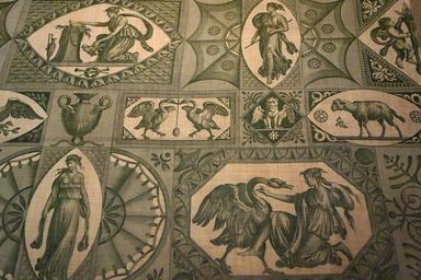 | Keywords: The Lion in Love or Leda, view 3, designed by Jean-Baptiste Huet, for Oberkampf, Jouy-en-Josas, France, c. 1809, roller-printed cotton tabby - Royal Ontario Museum - DSC04325.JPG en Exhibit in the Royal Ontario Museum Toronto Ontario Canada This work is old enough so that it is in the public domain Photography was permitted in the museum without restriction 2013-10-08 15 59 45 own Daderot cc-zero The Lion in Love or Leda Uploaded with UploadWizard | ||||