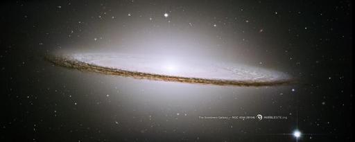 | Keywords: The Majestic Sombrero Galaxy (M104).jpg en NASA's Hubble Space Telescope has trained its razor-sharp eye on one of the universe's most stately and photogenic galaxies the Sombrero galaxy Messier 104 M104 The galaxy's hallmark is a brilliant white bulbous core encircled by the thick dust lanes comprising the spiral structure of the galaxy As seen from Earth the galaxy is tilted nearly edge-on We view it from just six degrees north of its equatorial plane This brilliant galaxy was named the Sombrero because of its resemblance to the broad rim and high-topped Mexican hat At a relatively bright magnitude of +8 M104 is just beyond the limit of naked-eye visibility and is easily seen through small telescopes The Sombrero lies at the southern edge of the rich Virgo cluster of galaxies and is one of the most massive objects in that group equivalent to 800 billion suns The galaxy is 50 000 light-years across and is located 28 million light-years from Earth Hubble easily resolves M104's rich system of globular clusters estimated to be nearly 2 000 in number -- 10 times as many as orbit our Milky Way galaxy The ages of the clusters are similar to the clusters in the Milky Way ranging from 10-13 billion years old Embedded in the bright core of M104 is a smaller disk which is tilted relative to the large disk X-ray emission suggests that there is material falling into the compact core where a 1-billion-solar-mass black hole resides 2013-01-30 21 53 38 http //solarsystem nasa gov/multimedia/display cfm Category Planets IM_ID 9967 NASA and The Hubble Heritage Team STScI/AURA PD-USGov Uploaded with UploadWizard Sombrero Galaxy |